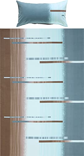 Erwin Müller BettwäscheBettgarnitur Flanell blau-braun Größe 155x220 cm (80x80 cm) - flauschig warm, temparaturausgleichend, pflegeleicht, mit praktischem Reißverschluss (weitere Größen)