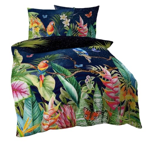 Kaeppel Mako Satin Digitaldruck Bettwäsche 2 TLG. Tropical Galaxy Dschungel Papagei Bunt RegenwaldGröße:135x200cm Bettwäsche