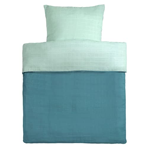 Die Wende-Bettwäsche in den Maßen 80x80 cm und 35x40 cm eignet sich perfekt für das Babybett oder die Wiege Ihres kleinen Lieblings. Das Design in Patina Mint ist zeitlos und passt zu vielen Einrichtungsstilen. Sowohl Eltern als auch Babys werden von dieser hochwertigen Bettwäsche begeistert sein.