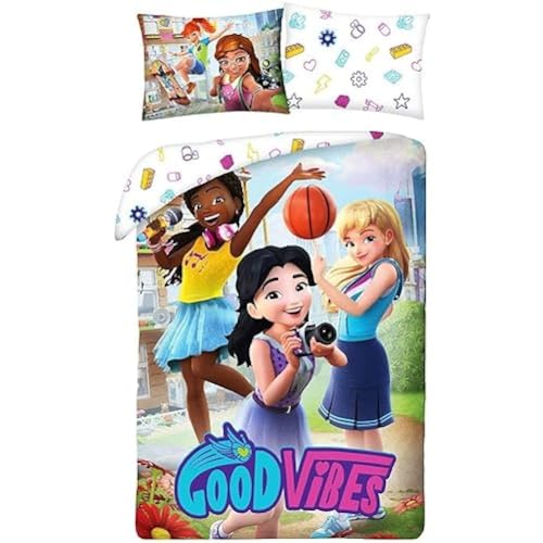 Halantex Lego Friends Einzelbettbezug und Kissenbezug Set100% Baumwolle, Wendbar, 140 x 200 cm, europäische Größe, offizielle Lizenzware