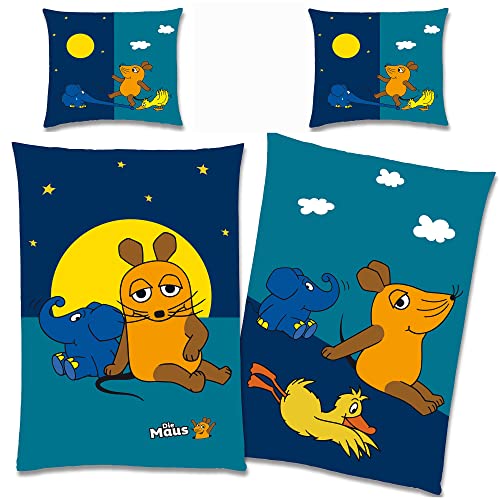 Ideal geeignet für Kinderzimmer, spricht dieses Modell vor allem junge Familien mit Kindern an. Es passt zu Standard-Bettdecken und Kissen und kann problemlos in der Maschine gewaschen werden, wodurch es sowohl pflegeleicht als auch praktisch im Alltag ist. Die niedlichen Motive der Sendung mit der Maus machen diese Bettwäsche bei den Kleinen besonders beliebt.