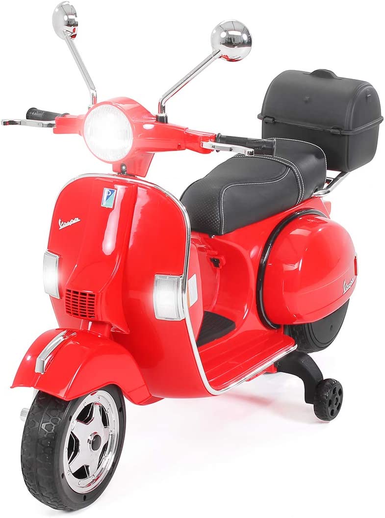 Der Trend-Roller - jetzt auch für Ihren Nachwuchs! Für Kinder im Alter von 3-6 Jahren. Ihre Jüngsten dürfen sich auf einen Elektroroller der besonderen Art freuen, denn dieses Modell kommt im lizenzierten Vespa-Design und macht dem Kult-Roller aus Italien alle Ehre! Detailverliebt bietet der Kinder-Elektroroller alles, was eine Spritztour zum Highlight gestaltet. Der Vespa-Elektroroller für Kinder ist ideal für außergewöhnlichen Fahrspaß auf zwei Rädern! Für alle Kids zwischen 3 und 6 Jahren bietet der Kinder-Elektroroller im Vespa-Design dank der beiden 18-Watt-Motoren rasanten Fahrspaß bis zu einer Geschwindigkeit von 3,6 km/h. Dem Original nachempfunden trifft hier Komfort auf Eleganz. Für maximale Sicherheit sorgen ausgeklügelte Features wie die Bremsautomatik und federnde EVA-Reifen. Vertrauen Sie auf die Qualität dieses Elektrofahrzeugs für Kinder! Der Elektroroller verfügt über folgende Zertifizierungen: CE, EN71, EN62115, ROHS. Mit diesem Kinder-Elektroroller kaufen Sie Exklusivität! Bequemer Ledersitz für hohen Komfort Detailliert mit Vespa-Prägung. Jede Fahrt ein Genuss! Die Vespa steht für ein Stück italienische Lebenskunst, die sich in jedem Detail widerspiegelt. So auch beim Elektroroller für Kinder. Der edle Kunstledersitz sieht dank sorgfältiger Verarbeitung und der Logo-Prägung nicht nur hochwertig aus, er bietet zudem den bestmöglichen Komfort für den kleinen Fahrer. Hier kann die Musik aufgedreht und mit der Vespa stilecht losgefahren werden! Mit Soundmodul für noch mehr Spaß Hier wird es sicher nicht langweilig! Dolce Vita - auch für die Ohren. Der Kinder-Elektroroller sorgt mit einem abgerundeten Unterhaltungspaket für beste Laune. Für authentisches Fahrvergnügen ist mit diesem Elektroroller für Kinder also definitiv gesorgt. Über das Soundmodul kann Ihr Kind vordefinierte Geschichten auf Englisch hören oder seine Lieblingsmusik und Kinder-Hörspiele abspielen. Der Kinder-Elektroroller bietet Anschlüsse für MP3, USB, SD-Karte und AUX. Weiterhin sorgt das integrierte Soundmodul für Motorensound und somit echtes Vespa-Feeling! Stauraum im Top-Case Kompakt, praktisch und verschließbar. Wer eine stilechte Ausfahrt mit der Vespa plant, hat häufig auch Gepäck dabei. Ob Picknick-Korb im Mini-Format, Wechselkleidung oder Spielzeug - der Kinder-Elektroroller bietet dank des Koffers genug Stauraum. Der Koffer ist verschließbar, sodass alle Habseligkeiten Ihres Kindes während der Fahrt sicher sind. Insgesamt kann der Elektroroller für Kinder eine Zuladung von maximal 35 kg handhaben. Der Kinder-Elektroroller ist auf die Bedürfnisse von Kindern abgestimmt! LED-Scheinwerfer Ihr Kind wird auch in der Dämmerung gesehen. Sehen und gesehen werden - das gilt bei dem Hingucker im Vespa-Design gleich mehrfach. Dieser elegante Kinder-Elektroroller sorgt nicht nur für Aufsehen, sondern auch für ausgezeichnete Sichtbarkeit. Frontscheinwerfer und Rücklicht bestehen aus hellen LED-Lampen, sodass Ihr Kind jederzeit gut zu erkennen ist. Selbst Fahrten bei Dämmerung werden so zu einer sicheren Sache! Wir achten auf Sicherheit Die zuverlässige Bremsautomatik bringt die Vespa zum Stehen. Sicherheit ist bei jedem Elektrofahrzeug für Kinder höchstes Gebot. Nur wer seine Kids in Sicherheit weiß, kann diese auch selbstständig ihre Umwelt erkunden lassen. Damit selbst die Jüngsten im Alter von 3 Jahren ohne Bedenken auf Spritztour gehen können, ist der Kinder-Elektroroller mit einer zuverlässigen Bremsautomatik ausgestattet. Diese greift schnell und bringt den Kinder-Elektroroller zuverlässig zum Stehen. Somit besteht kein unnötiges Risiko! Stabile Stützräder sorgen für sicheren Stand. Früh übt sich! Damit Ihr Nachwuchs-Rollerfahrer von Anfang an mit Spaß bei der Sache ist, verfügt der Kinder-Elektroroller über Stützräder. So sind Erfolgserlebnisse garantiert und Ihr Sprössling kann sich in seinem eigenen Tempo an das Zweirad herantasten. Manchmal sind es die kleinen Dinge, die am besten unterstützen. Wir sind uns sicher: Schon bald wird Ihr Kind wie ein Profi umherdüsen. Wir wünschen allzeit gute Fahrt! Sie sorgen sich um Ihr Parkett? Dank der leisen Weichgummi-Reifen haben Sie keinen Grund zur Sorge. Bei diesem Kinder-Elektroroller setzen wir auf wärme- und alterungsbeständige EVA-Reifen. Diese leichten und elastischen Vollgummireifen sind geräuscharm, dämpfen Stöße effektiv und bieten optimalen Grip. Technische Daten Sicherheit: Bremsautomatik Geschwindigkeit: ca. 3-6 Km/h Audiofunktionen: MP3, USB, SD-Karte, AUX, Geschichten auf Englisch Produktmaße (L X B X H): 111.0 x 54.0 x 82.0 cm Produktgewicht(E): 9.8 kg Kartongewicht(E): 12.0 kg Kartonmaße (L X B X H): 95.0 x 35.5 x 44.5 cm Antriebsart: 1-Rad Antrieb Zertifikate: CE, EN71, EN62115, ROHS Getriebe: 1x Vorwärts + 1x Rückwärts Ladezeit: 8 - 10 Stunden Motor: 2 Motoren 12V 18Watt (Total 36Watt) Fahrzeugart: Zweiräder Alter: 3-7 Jahre Weitere Funktionen: Stützräder, Koffer zum Öffnen, LCD Ladeanzeige Batterie: 1 x 12 Volt 7AH Led Beleuchtung: LED Scheinwerfer vorne, LED Rücklicht Max. Zuladung: 35 kg Sitz: Ledersitz für 1 Person Lenker: Lenker mit Soundmodul für Hupe und Musik Marke: Vespa Reifen: EVA-Vollgummireifen Betriebsdauer: Fahrdauer bis zu 1-1,5 Stunden