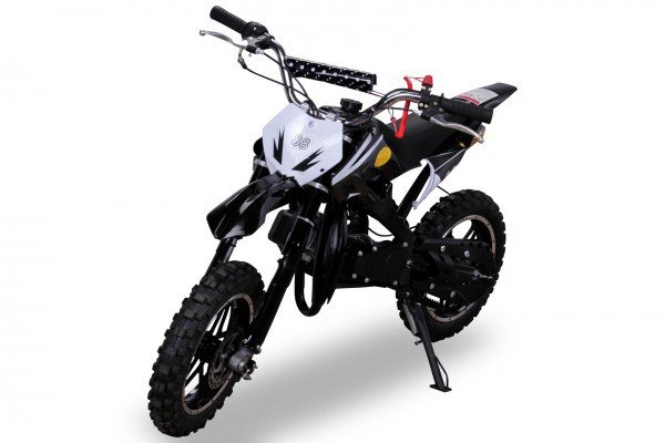 Der Traum vom Fliegen: Das ultra leichte Delta Cross-Bike für Kinder Ist Ihr Kind bereit für seine ersten kleineren Jumps im Motocrosssport? Das Delta Cross-Bike ist das sensationelle Leichtgewicht unter den Einsteigermaschinen. Kaufen Sie ausgereifte Technik im Racing-Look und bringen Sie Ihr Nachwuchstalent ganz groß raus! High Performance in der Lieblingsfarbe: Das Delta Cross Bike Mit dem Delta Kinder Cross Bike kaufen Sie Ihrem Kind ein ideales Einsteigermodell. Ausgestattet mit Drehgas, einem pulverbeschichtetem Alu Pull Starter und einem 49ccm Einzylinder-Zweitaktmotor erreicht das Dirtbike blitzschnell bis zu 50 km/h. An den Zuschauern zischt so nur noch ein Blitz in der Lieblingsfarbe vorbei - von blau, grün, orange, rot, weiß oder klassischem schwarz reicht die Auswahl! Die leichte Konstruktion und die gleichmäßige Leistungsentfaltung sorgen dabei für ein sicheres und agiles Fahrgefühl. Jumps und Tricks sind mit diesem Leichtgewicht kein Problem. Der Sportauspuff und der Luftfilter verleihen dem Cross-Bike zusätzlich einen sportlich coolen Look! Sicher unterwegs auf jedem Trial Das Cross-Bike ist mit extra groben Stollenreifen ausgestattet, um guten Halt in jedem Gelände zu vermitteln. Zwei gelochte Scheibenbremsen ermöglichen schnelles und abruptes Abbremsen in jeder Situation. So können die Kids richtig Gas geben und trotzdem sicher fahren. Die Federgabel vorne und Stoßdämpfer hinten garantieren eine weiche Federung für ein komfortables Fahren. Achten Sie immer darauf, dass ihr Kind nur mit ausreichender Schutzkleidung fährt. Den passenden Crosshelm erhalten sie in unserem Onlineshop. Ausstattung und technische Details: Sportauspuff Sportluftfilter Drehgas Pulverbeschichteter Alu-Pull-Starter Große Stollenreifen für Gripp im Gelände 2 x gelochte Scheibenbremsen 2 Schlüssel Motor AUS-Schalter am Lenker Not-Aus Leine am Lenker Technische Daten Sicherheit: Motor AUS Schalter und Not Ausleine am Lenker Geschwindigkeit: Bis zu 35-40 km/h je nach Beladung Antrieb: Benzinmotor Sitzhöhe: 60 cm Produktmaße (L X B X H): 122.0 X 66.0 X 80.0 cm Produktgewicht(E): 22.0 kg Kartongewicht(E): 25.0 kg Kartonmaße (L X B X H): 105.0 X 28.0 X 53.0 cm Kraftstoff: Mischungsverhältniss 1:25 Getriebe: Automatik Bodenfreiheit: 200 mm Motor: 2-Takt 49ccm Zündung: elektronisch, wartungsfrei Start: Zündschloß mit Alu Pull Starter Motorart: Benzin Fahrzeugtyp: Mini Crossbike Achsabstand: 810 mm Tankinhalt: 1,6 Liter Alter: ab 5 Jahren Bremsen: Gelochte Scheibenbremse vorne und hinten Max. Zuladung: 60 Kg Marke: Actionbikes Motors Reifen: vorne 2,5-10 und hinten 2,5-10