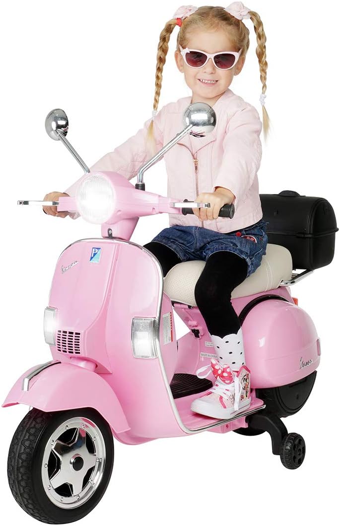Der Trend-Roller - jetzt auch für Ihren Nachwuchs! Für Kinder im Alter von 3-6 Jahren. Ihre Jüngsten dürfen sich auf einen Elektroroller der besonderen Art freuen, denn dieses Modell kommt im lizenzierten Vespa-Design und macht dem Kult-Roller aus Italien alle Ehre! Detailverliebt bietet der Kinder-Elektroroller alles, was eine Spritztour zum Highlight gestaltet. Der Vespa-Elektroroller für Kinder ist ideal für außergewöhnlichen Fahrspaß auf zwei Rädern! Für alle Kids zwischen 3 und 6 Jahren bietet der Kinder-Elektroroller im Vespa-Design dank der beiden 18-Watt-Motoren rasanten Fahrspaß bis zu einer Geschwindigkeit von 3,6 km/h. Dem Original nachempfunden trifft hier Komfort auf Eleganz. Für maximale Sicherheit sorgen ausgeklügelte Features wie die Bremsautomatik und federnde EVA-Reifen. Vertrauen Sie auf die Qualität dieses Elektrofahrzeugs für Kinder! Der Elektroroller verfügt über folgende Zertifizierungen: CE, EN71, EN62115, ROHS. Mit diesem Kinder-Elektroroller kaufen Sie Exklusivität! Bequemer Ledersitz für hohen Komfort Detailliert mit Vespa-Prägung. Jede Fahrt ein Genuss! Die Vespa steht für ein Stück italienische Lebenskunst, die sich in jedem Detail widerspiegelt. So auch beim Elektroroller für Kinder. Der edle Kunstledersitz sieht dank sorgfältiger Verarbeitung und der Logo-Prägung nicht nur hochwertig aus, er bietet zudem den bestmöglichen Komfort für den kleinen Fahrer. Hier kann die Musik aufgedreht und mit der Vespa stilecht losgefahren werden! Mit Soundmodul für noch mehr Spaß Hier wird es sicher nicht langweilig! Dolce Vita - auch für die Ohren. Der Kinder-Elektroroller sorgt mit einem abgerundeten Unterhaltungspaket für beste Laune. Für authentisches Fahrvergnügen ist mit diesem Elektroroller für Kinder also definitiv gesorgt. Über das Soundmodul kann Ihr Kind vordefinierte Geschichten auf Englisch hören oder seine Lieblingsmusik und Kinder-Hörspiele abspielen. Der Kinder-Elektroroller bietet Anschlüsse für MP3, USB, SD-Karte und AUX. Weiterhin sorgt das integrierte Soundmodul für Motorensound und somit echtes Vespa-Feeling! Stauraum im Top-Case Kompakt, praktisch und verschließbar. Wer eine stilechte Ausfahrt mit der Vespa plant, hat häufig auch Gepäck dabei. Ob Picknick-Korb im Mini-Format, Wechselkleidung oder Spielzeug - der Kinder-Elektroroller bietet dank des Koffers genug Stauraum. Der Koffer ist verschließbar, sodass alle Habseligkeiten Ihres Kindes während der Fahrt sicher sind. Insgesamt kann der Elektroroller für Kinder eine Zuladung von maximal 35 kg handhaben. Der Kinder-Elektroroller ist auf die Bedürfnisse von Kindern abgestimmt! LED-Scheinwerfer Ihr Kind wird auch in der Dämmerung gesehen. Sehen und gesehen werden - das gilt bei dem Hingucker im Vespa-Design gleich mehrfach. Dieser elegante Kinder-Elektroroller sorgt nicht nur für Aufsehen, sondern auch für ausgezeichnete Sichtbarkeit. Frontscheinwerfer und Rücklicht bestehen aus hellen LED-Lampen, sodass Ihr Kind jederzeit gut zu erkennen ist. Selbst Fahrten bei Dämmerung werden so zu einer sicheren Sache! Wir achten auf Sicherheit Die zuverlässige Bremsautomatik bringt die Vespa zum Stehen. Sicherheit ist bei jedem Elektrofahrzeug für Kinder höchstes Gebot. Nur wer seine Kids in Sicherheit weiß, kann diese auch selbstständig ihre Umwelt erkunden lassen. Damit selbst die Jüngsten im Alter von 3 Jahren ohne Bedenken auf Spritztour gehen können, ist der Kinder-Elektroroller mit einer zuverlässigen Bremsautomatik ausgestattet. Diese greift schnell und bringt den Kinder-Elektroroller zuverlässig zum Stehen. Somit besteht kein unnötiges Risiko! Stabile Stützräder sorgen für sicheren Stand. Früh übt sich! Damit Ihr Nachwuchs-Rollerfahrer von Anfang an mit Spaß bei der Sache ist, verfügt der Kinder-Elektroroller über Stützräder. So sind Erfolgserlebnisse garantiert und Ihr Sprössling kann sich in seinem eigenen Tempo an das Zweirad herantasten. Manchmal sind es die kleinen Dinge, die am besten unterstützen. Wir sind uns sicher: Schon bald wird Ihr Kind wie ein Profi umherdüsen. Wir wünschen allzeit gute Fahrt! Sie sorgen sich um Ihr Parkett? Dank der leisen Weichgummi-Reifen haben Sie keinen Grund zur Sorge. Bei diesem Kinder-Elektroroller setzen wir auf wärme- und alterungsbeständige EVA-Reifen. Diese leichten und elastischen Vollgummireifen sind geräuscharm, dämpfen Stöße effektiv und bieten optimalen Grip. Technische Daten Sicherheit: Bremsautomatik Geschwindigkeit: ca. 3-6 Km/h Audiofunktionen: MP3, USB, SD-Karte, AUX, Geschichten auf Englisch Produktmaße (L X B X H): 111.0 x 54.0 x 82.0 cm Produktgewicht(E): 9.8 kg Kartongewicht(E): 12.0 kg Kartonmaße (L X B X H): 95.0 x 35.5 x 44.5 cm Antriebsart: 1-Rad Antrieb Zertifikate: CE, EN71, EN62115, ROHS Getriebe: 1x Vorwärts + 1x Rückwärts Ladezeit: 8 - 10 Stunden Motor: 2 Motoren 12V 18Watt (Total 36Watt) Fahrzeugart: Zweiräder Alter: 3-7 Jahre Weitere Funktionen: Stützräder, Koffer zum Öffnen, LCD Ladeanzeige Batterie: 1 x 12 Volt 7AH Led Beleuchtung: LED Scheinwerfer vorne, LED Rücklicht Max. Zuladung: 35 kg Sitz: Ledersitz für 1 Person Lenker: Lenker mit Soundmodul für Hupe und Musik Marke: Vespa Reifen: EVA-Vollgummireifen Betriebsdauer: Fahrdauer bis zu 1-1,5 Stunden