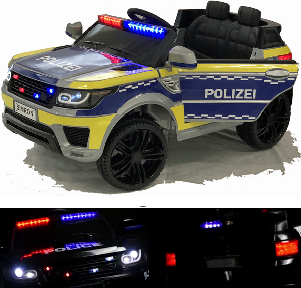 SIMRON Deutsche POLIZEI Kinderauto Polizeiauto mit Funkgerät Sirene und Martinshorn Bluetooth Kinderfahrzeug Kinder Elektroauto Gefedert Hilfsrollen