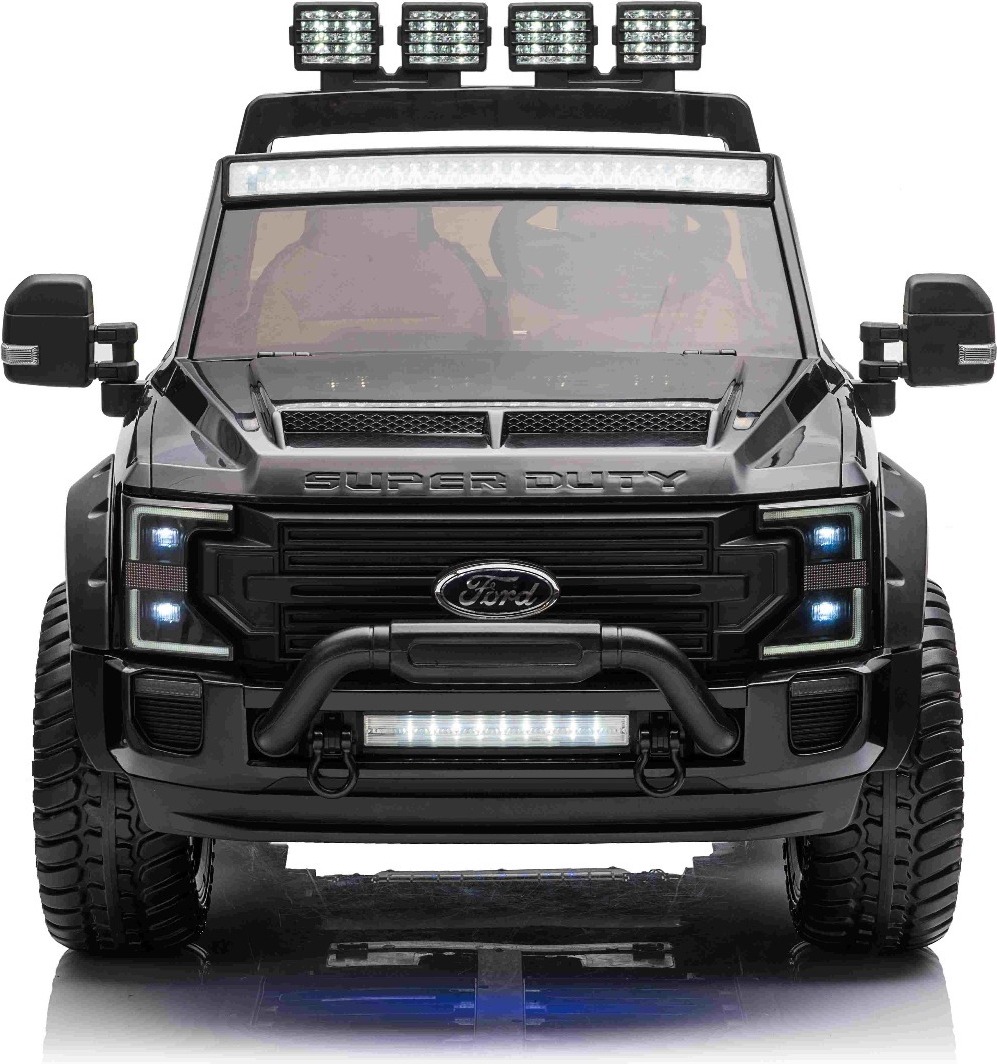 Beneo Kinder-Elektroauto Ford Super Duty 24V schwarzZweisitzer, 4X4-Antrieb, Kunstledersitze, EVA-Doppelhinterräder, 2,4 GHz-Fernbedienung, LED-Lichtrampe, MP3-Player mit USB-Eingang, ORIGINAL-Lizenz