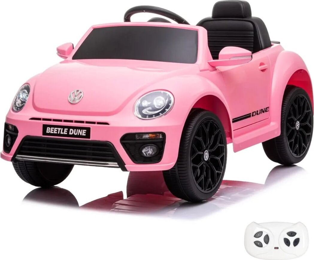 Kijana Volkswagen Beetle Kinder Elektroauto 12Vmit Fernbedienung für 1 bis 4 Jahre, rosa, Sicherheitsgurt, MP3-Player, 2 Motoren, Soft-Start-Funktion