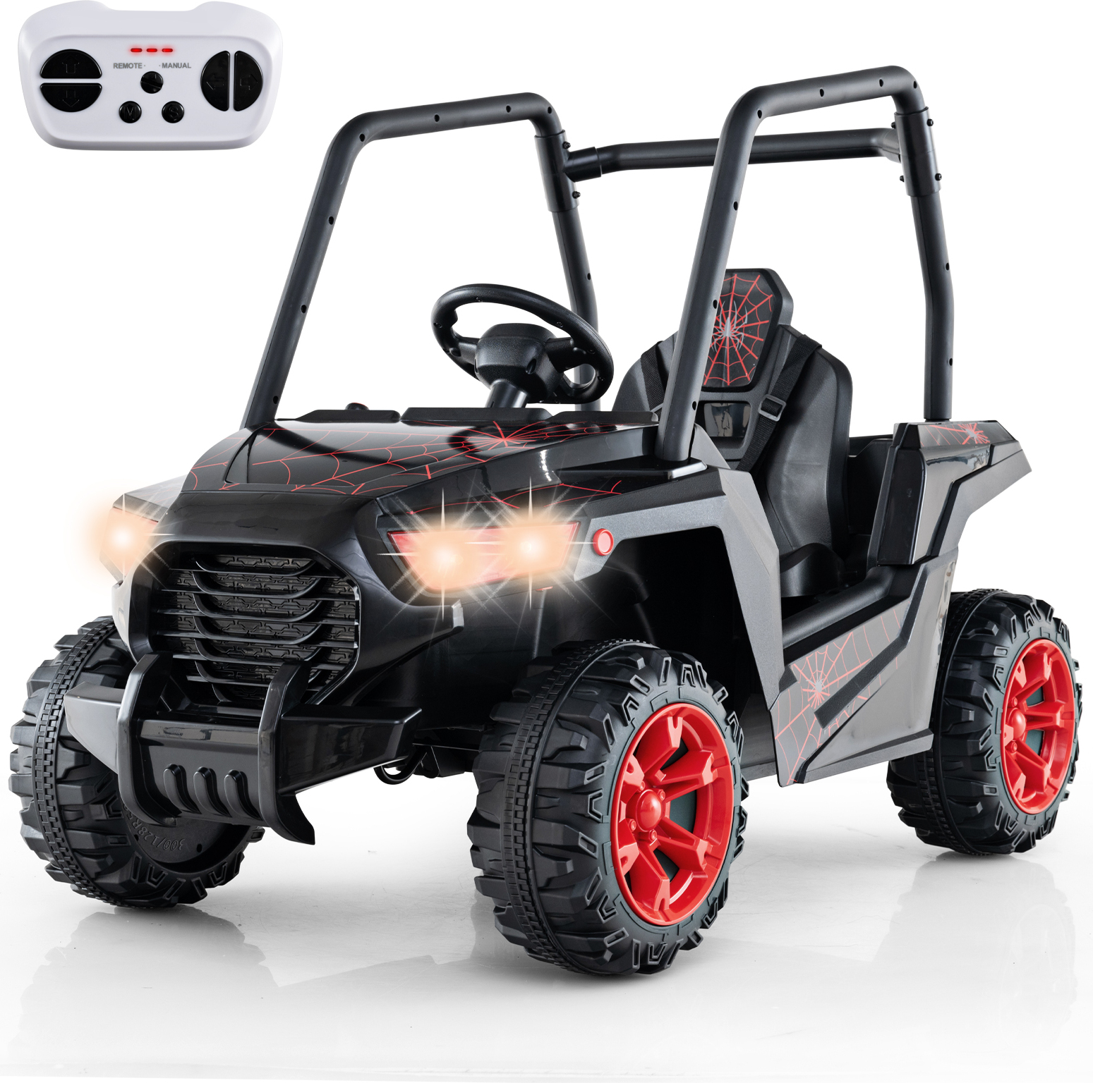 Costway Kinder Elektroauto 24V UTV Elektrisch mit FernsteuerungMusik, Hupe, Radio & LED (Schwarz + Rot)