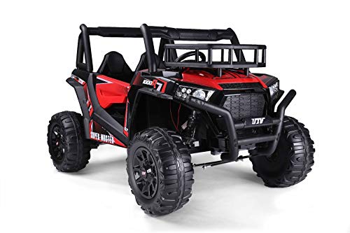 RIRICAR Kinder elektroauto 24V UTVrot, Elektro Buggy für Kinder 2 sitzer mit 2,4 GHz Fernbedienung, 2 x 200 W Motor, Eva-Räder, gepolsterter Sitz, USB, SD-Karte, Elektro Buggy UTV MX ab 3-8 Jahre
