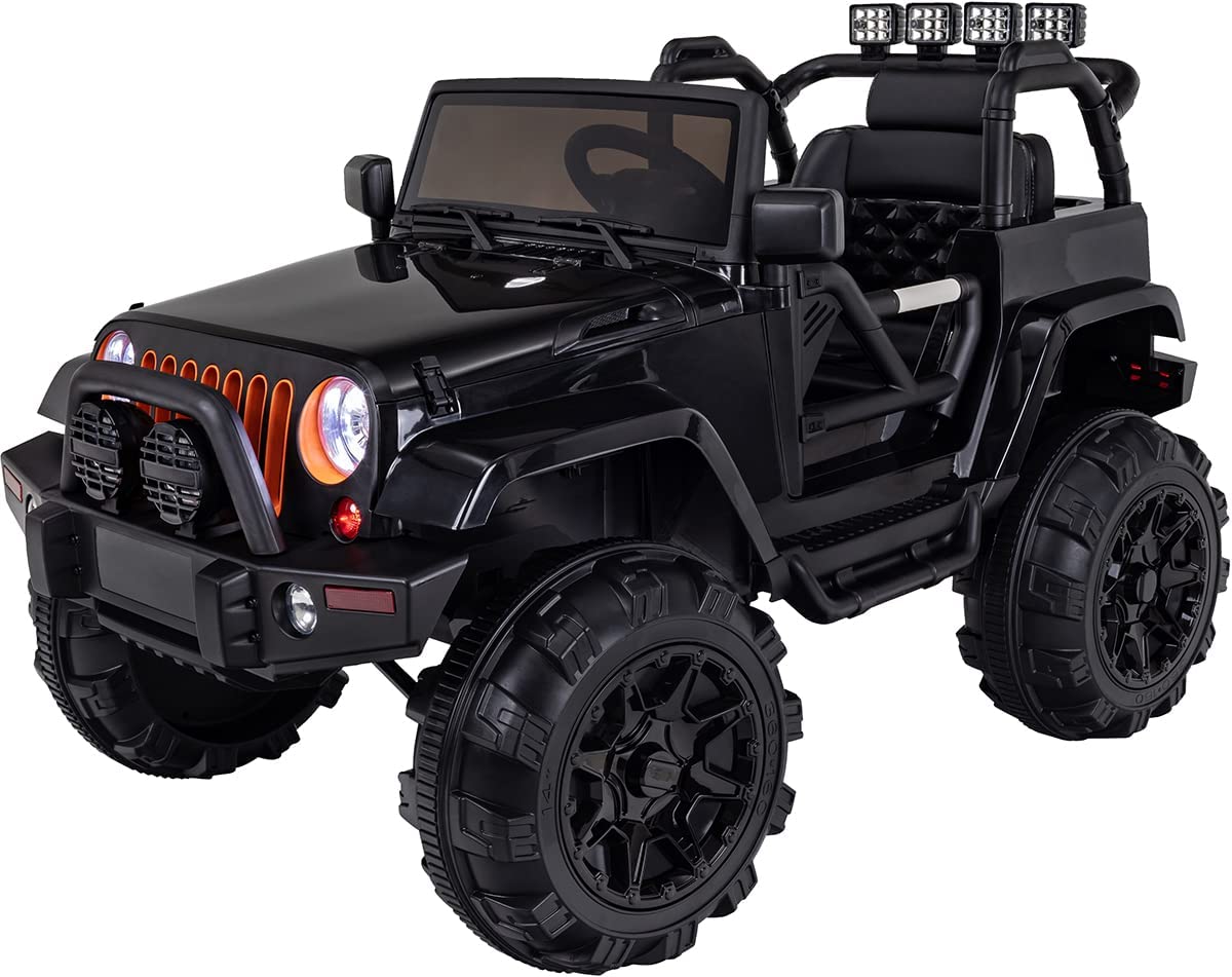 Kinder Elektroauto Offroad Jeep Adventure Das neue Kinder Elektroauto Jeep Offroad Adventure ermöglicht Ihrem Kind ein unvergleichliches Fahrerlebnis bei höchster Sicherheit. Mit den Türen zum Öffnen, dem Getriebe mit zwei Vorwärtsgängen und einem Rückwärtsgang, dem Sicherheitsgurt und dem originalen Motorsound beim Starten fühlt sich Ihr Kind wie in einem richtigen Auto. Die hintergrundbeleuchteten Armaturen und LED Scheinwerfer schaffen auch bei dunkleren Lichtverhältnissen die besten Rahmenbedingungen zum Fahren. Zudem sind Streitigkeiten zwischen Geschwistern kein Thema, denn das Jeep Kinderauto bietet Platz für zwei Personen. Dabei behalten Sie ständig die Kontrolle, denn mit der Fernbedienung mit First-Funktion können Sie jederzeit selbst das Steuer übernehmen. Die zwei Motoren mit 35 Watt (total 70 Watt) sorgen für einen sicheren Antrieb. 5 Fach Soundmodul und Motorsound beim Starten Neben dem originalen Sound eines startenden Motors besitzt das Kinder Elektroauto Jeep Offroad Adventure mit dem 5-Fach Soundmodul ein weiteres exzellentes Extra. So vereint dieses Kinderauto mit einem SD-Karten-Slot, USB-, MP3- und Aux-Anschluss und integriertem Radio mit FM Empfang modernste Audiofunktionen, die dem Jeep Kinderauto beste Klangqualität verleihen. Offroad Jeep Adventure 2x35 Watt Mit einer Geschwindigkeit von 3-6 km/h fährt dieses Elektroauto für Kinder mit der idealen Geschwindigkeit für 3-7-Jährige. Der Sitz für eine Person bietet vollen Fahrspaß bei einem maximalen Zuladungsgewicht von 35 kg. Bei einer Fahrdauer von 1 bis 1,5 Stunden wird Ihrem Kind garantiert nicht langweilig. Lenkrad mit Sound für Hupe Lenken und Hupen - die für Kinder wohl wichtigsten Funktionen dürfen natürlich auch beim Kinder Elektroauto Jeep Offroad Adventure nicht fehlen. Die im Lieferumfang enthaltene Lenkstange inklusive dem Lenkrad verschaffen Ihrem Kind nach einfacher Montierung ein authentisches und lustiges Fahrerlebnis. Neben den im Soundmodul enthaltenen Audiofunktionen für Musik ist im Lenkrad auch eine Hupe eingebaut, die bei Kindern für beste Unterhaltung sorgt. LED Scheinwerfer, zuschaltbar Unabhängig von den Lichtverhältnissen ermöglichen die praktischen LED Scheinwerfer exzellenten Fahrspaß zu jeder Uhrzeit. Die Scheinwerfer sind separat zuschaltbar und verschwenden so keine Energie. Einfach bei Dunkelheit einschalten und weiter geht's. 2-Punkt Sicherheitsgurt, Bremsautomatik Die im Elektrofahrzeug eingebaute Bremsautomatik beugt Zusammenstößen und Unfällen vor und sorgt so für höchste Sicherheit. Dazu verhindert der 2-Punkt Sicherheitsgurt unangenehmes Hin- und Herrutschen im Auto und schützt Ihr Kind zusätzlich. Die beidseitige Federung vorne und hinten schafft besten Komfort und ermöglicht auch auf ungleichem Untergrund ein sicheres Fahrerlebnis. Sollte Ihr Kind trotz der sicheren Geschwindigkeit von 3-6 km/h einmal vom Weg abkommen, so behalten Sie trotzdem die Kontrolle. Mit der 2,4 Ghz mit First-Funktion Fernbedienung können sie das Kinder Elektroauto Jeep Offroad Adventure jederzeit in die richtige Spur lenken und so stets den Überblick behalten. Motorsound, Beschleunigungssound, Hupe Das Kinderauto besticht nicht nur durch sein sicheres wie modernes Erscheinungsbild, sondern überzeugt darüber hinaus mit authentischen Soundfunktionen. So beeindrucken nicht nur die Hupe und der Sound des Motors beim Starten des Elektrofahrzeugs, auch der Beschleunigungssound bei einer Erhöhung der Geschwindigkeit schafft ein echtes Fahrgefühl. Bis ins Detail Nach einer Fahrdauer von bis zu 1,5 Stunden benötigt das Kinder Elektroauto Jeep Offroad Adventure ca. 4-8 Stunden Ladezeit, um wieder vollständig aufgeladen zu sein. Einfach und bequem über Nacht an das mitgelieferte Ladegerät anschließen. Die Reifen mit Weichgummiring müssen zwar erst noch selbst montiert werden, dies nimmt allerdings nur wenige Minuten in Anspruch. Insgesamt sind bereits 97% des Autos vormontiert. Die Montage der restlichen Teile sollte nicht länger als 30 Minuten dauern. Transportbügel und Rollen Auch der Transport des Kinder Elektroauto Jeep Offroad Adventure gestaltet sich sehr einfach. Mit den Transportrollen am Heck und dem Tragegriff an der Front gelingt der Transport des Kinderautos ohne großen Aufwand. Türen zum Öffnen Die zwei Türen links und rechts zum Öffnen des Kinder Elektroauto Jeep Offroad Adventure ermöglichen einen einfachen und ungefährlichen Einstieg für Ihr Kind. 2,4 GHz mit First-Funktion Sie wollen auf Nummer sicher gehen und Ihr Kind bei seinen ersten Schritten Richtung Mobilität begleiten? Dank der beiliegenden Fernbedienung haben Sie jederzeit die Kontrolle! Ob Geschwindigkeit oder Bremsautomatik - Sie können mittels 2,4 GHz Fernbedienung mit First-Funktion auf alle Parameter zugreifen! Inklusive Soft-Start Dank Soft-Start ist für sanftes Anfahren beim Kinder Elektroauto gesorgt. Technische Daten Sicherheit: Sicherheitsgurt, Bremsautomatik Geschwindigkeit: ca. 3 - 6 km/h Fernbedienung: 2,4 Ghz mit First-Funktion Audiofunktionen: FM Radio, SD- Karten, USB, MP3, AUX FM Radio Produktmaße (L X B X H): 115.0 x 72.0 x 78.0 cm Produktgewicht(E): 28.5 kg Kartongewicht(E): 30.0 kg Kartonmaße (L X B X H): 121.0 x 82.0 x 39.0 cm Antriebsart: 2-Rad Antrieb Zertifikate: CE, EN71, EN62115, ROHS Getriebe: 2x Vorwärtsgang - 1x Rückwärtsgang Lenkrad: Lenkrad mit Sound für Hupe Ladezeit: 4 - 8 Stunden Motor: 2 Motoren 12V 35Watt (Total 70Watt) Transport: Transportrollen am Heck, Tragegriff an der Front Fahrzeugart: Geländefahrzeuge Türen: Türen zum Öffnen Alter: 3-7 Jahre Weitere Funktionen: Hintergrundbeleuchtete Armaturen, Motorsound beim Starten Batterie: 1 x 12 Volt 7AH Led Beleuchtung: LED Scheinwerfer Stoßdämpfer: Stoßdämpfer vorne und hinten Max. Zuladung: 35 kg Sitz: Sitz für 1 Person Marke: Actionbikes Motors Reifen: Reifen mit Weichgummiring Betriebsdauer: Fahrdauer bis zu 1-1,5 Stunden