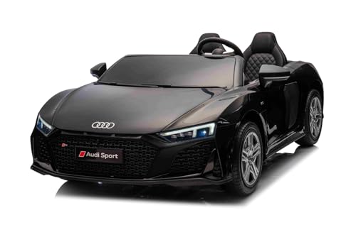 RIRICAR Kinder Elektroauto 24V 2 Sitzer A.U.D.I.Schwarz, MP3-Player mit USB/AUX und Bluetooth, Batterie 24V/14Ah, 2 x 200W Motoren, Eva-Räder mit Hinterradfederung, Verstellbare Ledersitze