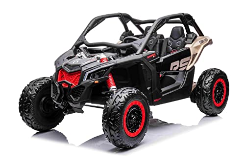 RIRICAR Kinder Elektro Buggy 12V Can-am Maverickschwarz, 4x4 Elektroauto mit LED Lichtern, 2-Sitzer