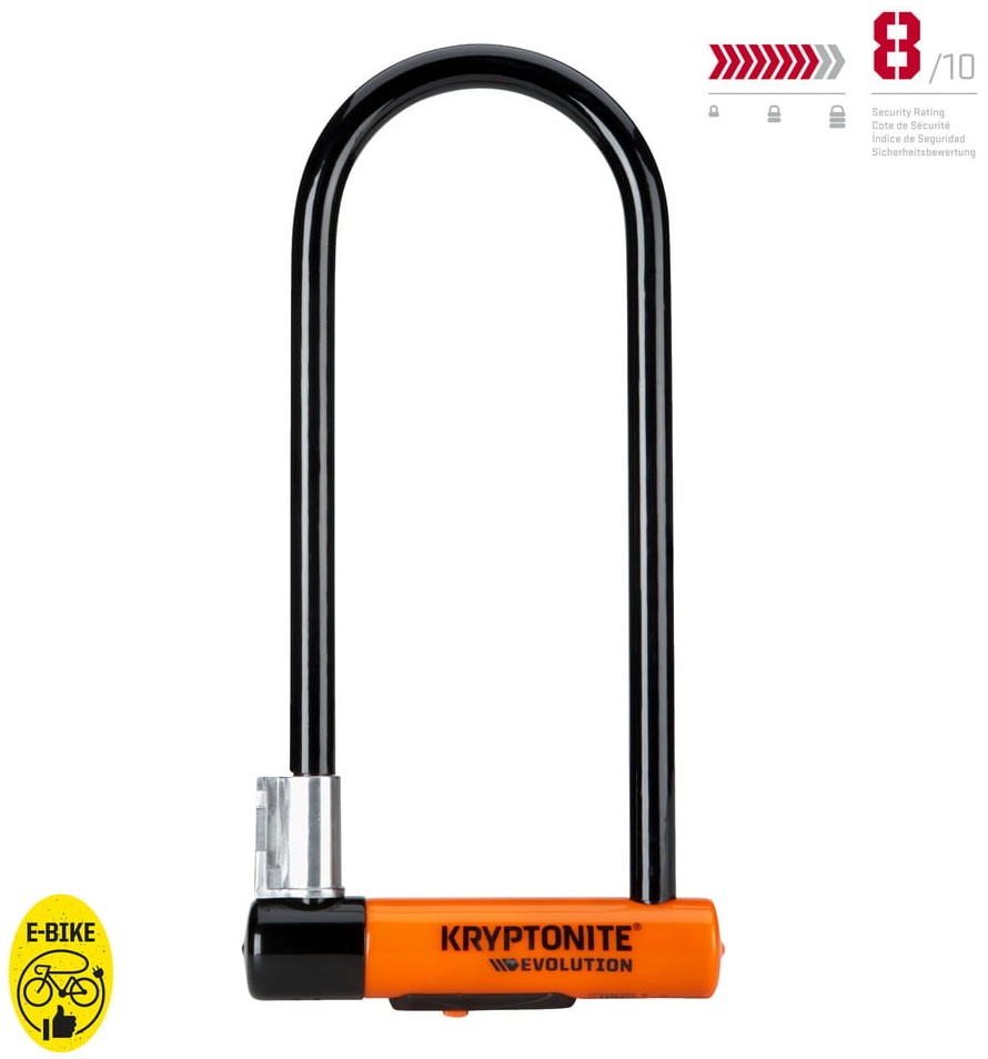 Das Evolution Bügelschloss von Kryptonite verfügt über einen 14 mm starken Bügel aus gehärtetem Kryptonium Spezialstahl mit extrem widerstandsfähigem, doppeltem Schließmechanismus. Das verstärkte Hochsicherheits-Scheibenzylinderschloss ist gegen Aufbohren zuverlässig gesichert und speziell entwickelte, ovale und besonders widerstandsfähige Schließbügel wird durch einen wetterfesten Vinylüberzug vor Beschädigungen schützt. Mitgeliefert werden drei Schlüssel, einer der Schlüssel verfügt über eine integrierte Schlüsselbeleuchtung und der Transport des Evolution ist besonders einfach, dank dem mitgelieferten variablem Flex Frame Halter. Die LS Variante des Evolution verfügt einen besonders langen Bügel, um das Fahrrad entweder an stärkere Objekte anzuschließen oder zwei Fahrräder zusammenzuschließen. Kryptonite Security Level: 8/10 ATPO Schlüsselnummerregistration 14 mm starker Bügel aus Kryptonium Spezialstahl Maße: 10,2 x 29,2 cm Gewicht: 2,06 kg Inklusive 3 Schlüssel