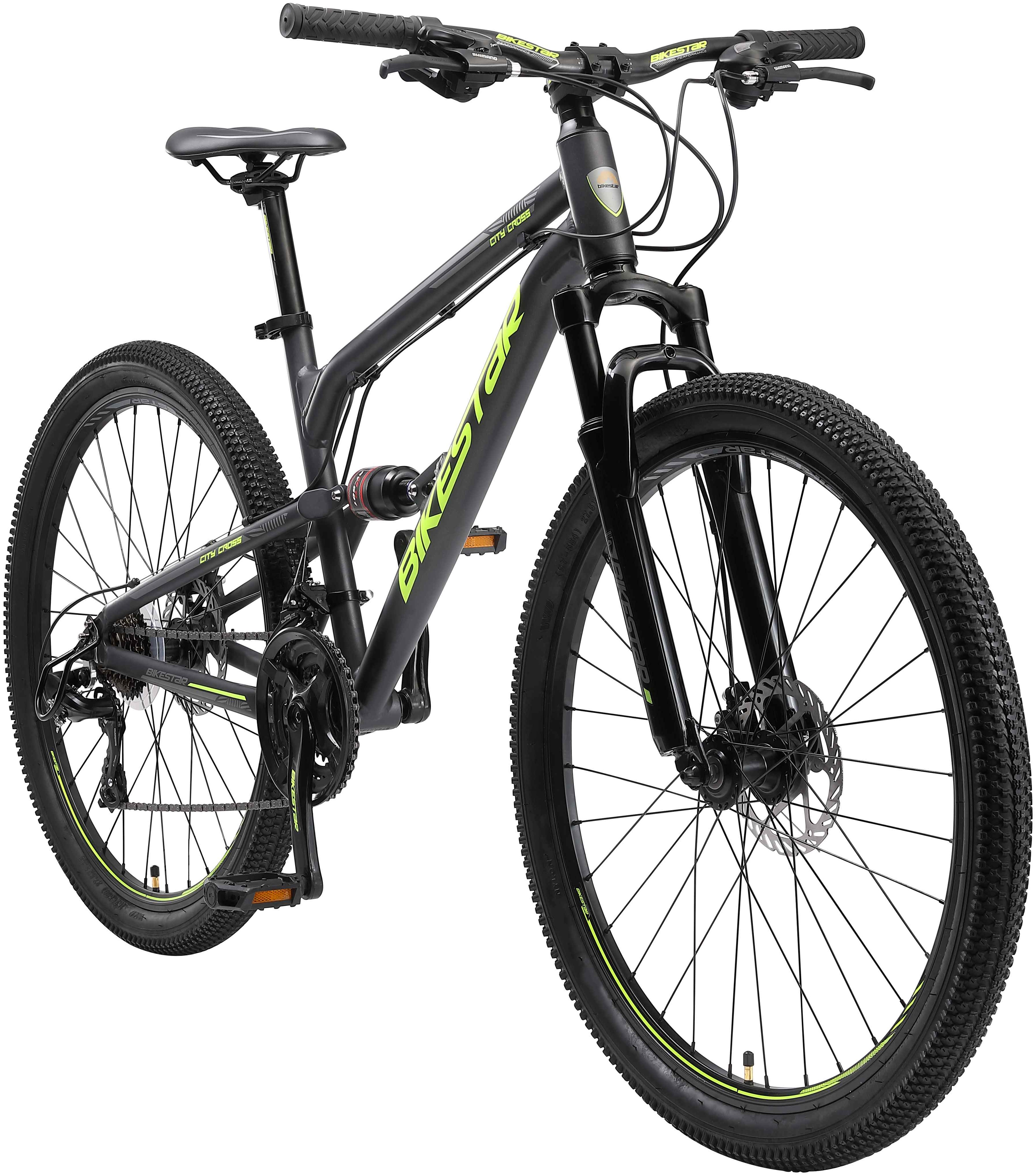 | Name | BIKESTAR Vollgefedert Aluminium Mountainbike 26 Zoll, 21 Gang Shimano Schaltung mit Scheibenbremse | 16 Zoll Rahmen Fully MTB Erwachsenen- und Jugendfahrrad | Schwarz |