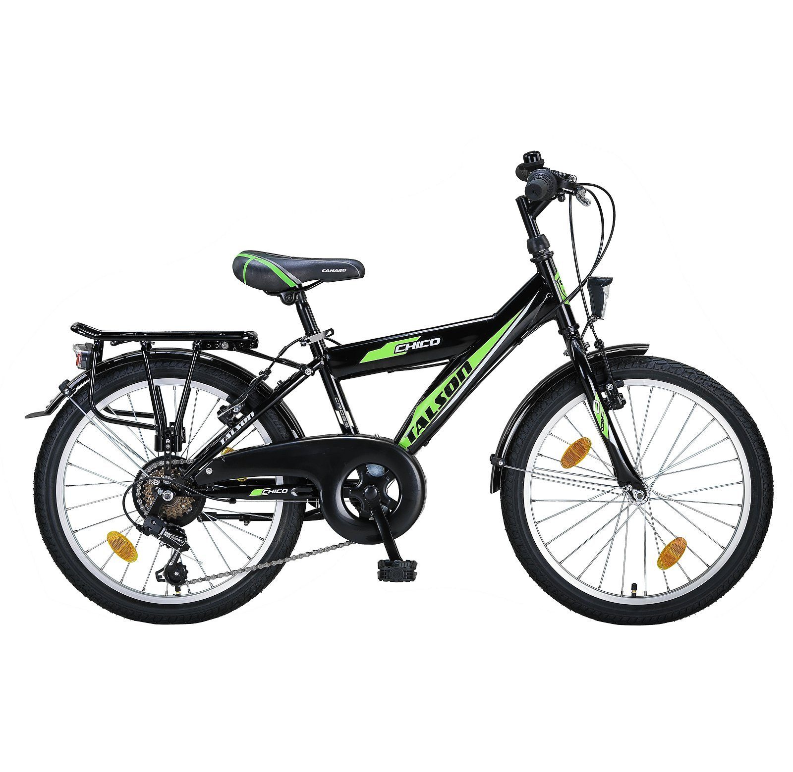 Talson Kinderfahrrad 20 Zoll Cityrad6 Gang Shimano, Kettenschaltung, mit Beleuchtung nach StVZO und Gepäckträger Schwarz
