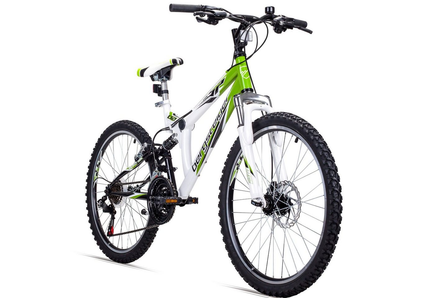 bergsteiger Mountainbike Montreal 2024 Zoll Kinderfahrrad, 6,7,8, 9, 10, 11, 12, 13 Jahre, 18 Gang Shimano Tourney RD-TZ50 Schaltwerk, Kettenschaltung, cooles Design, schwarz