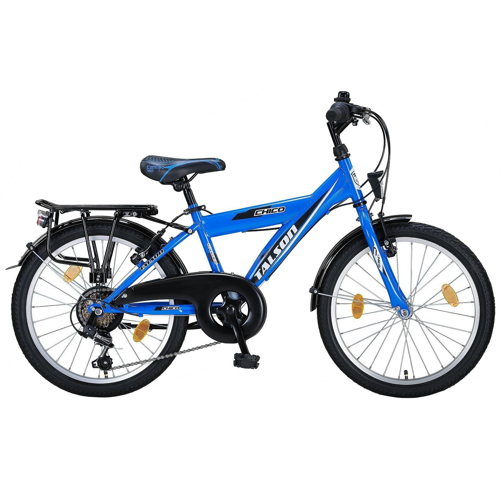 Talson Kinderfahrrad 20 Zoll Cityrad6 Gang Shimano, Kettenschaltung, mit Beleuchtung nach StVZO und Gepäckträger Blau