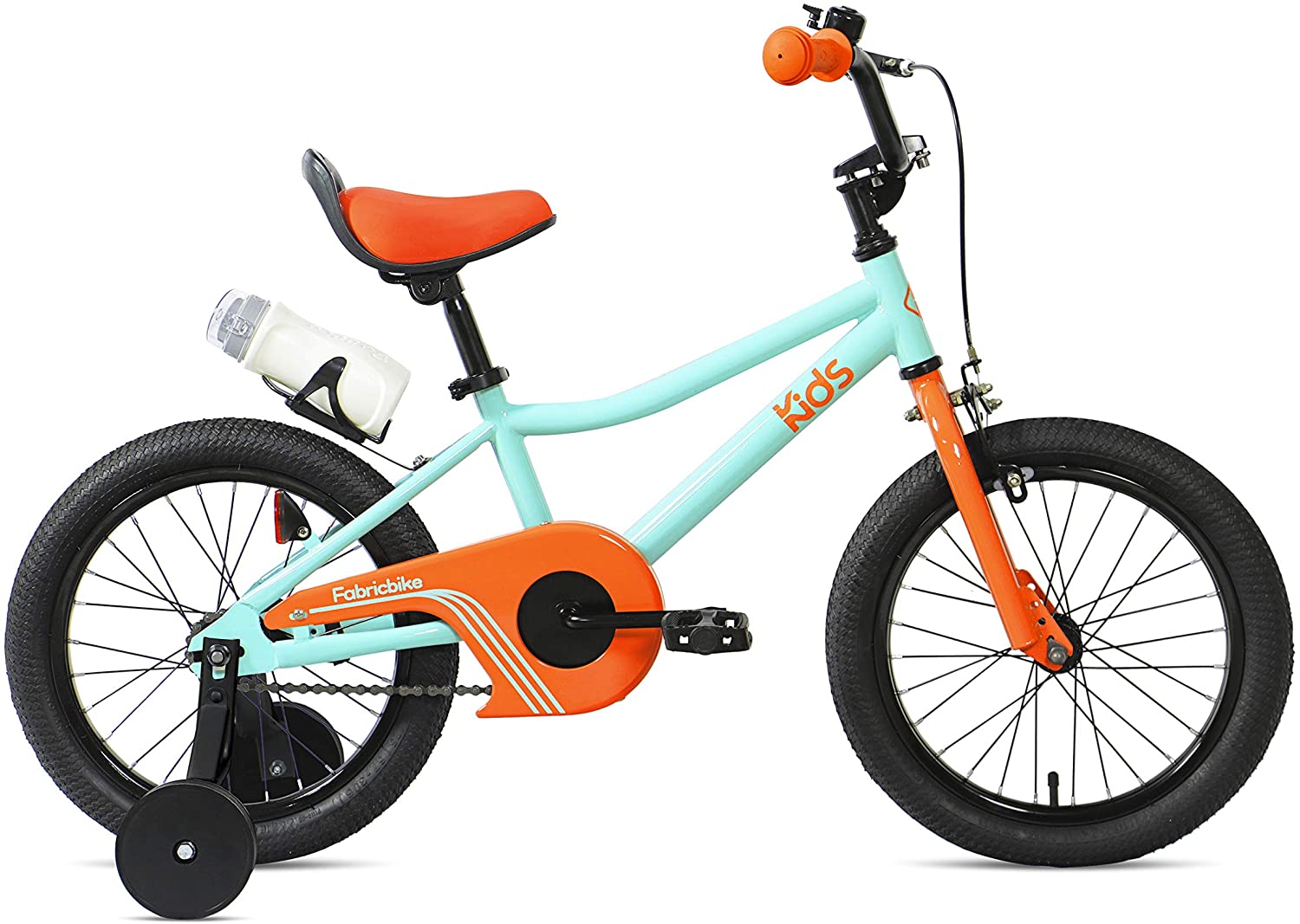 | Name | FabricBike Kids Fahrrad mit Pedalen für Jungen und Mädchen, Abnehmbare Trainingsräder, Hochwertige Bremsen, 12- und 16-Zoll-Räder, 4 Farben (Aqua & Orange, 16 Zoll: 3-7 Jahre (96 bis 120 cm hoch)) |