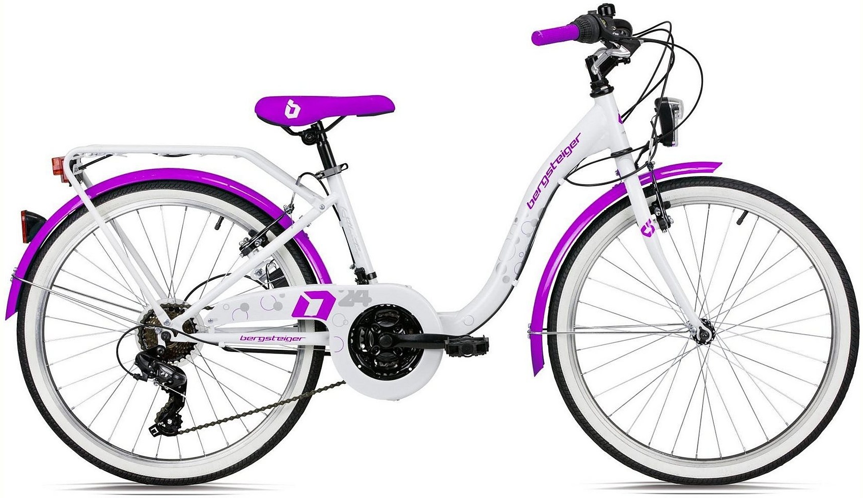 | Name | Bergsteiger Jugendfahrrad Atlantis, 18 Gang Shimano Tourney RD-TY300 Schaltwerk, Kettenschaltung, 24 Zoll, RH 34 cm, weiß/violett |