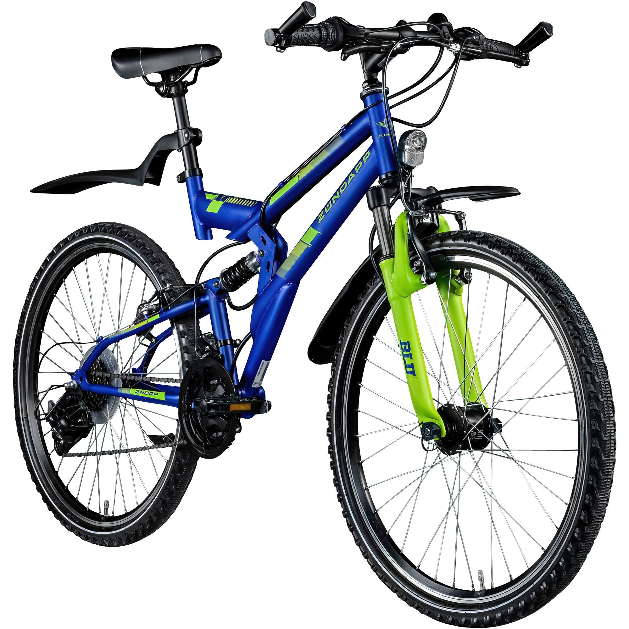 • Das Zündapp Mountainbike Blue 3.0 ist ein vielseitiges Fully-Bike für Jugendliche, das ein geschmeidiges Fahrgefühl auf unebenem Gelände bietet