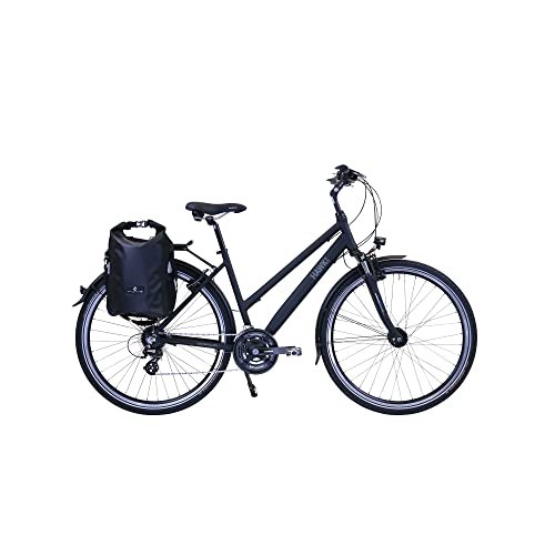 HAWK Trekking Lady Premium Plus Fahrrad Damen inkl. Tasche44 cm I Bike mit Microshift 24 Gang Kettenschaltung & Beleuchtung I Allrounder I Schwarz
