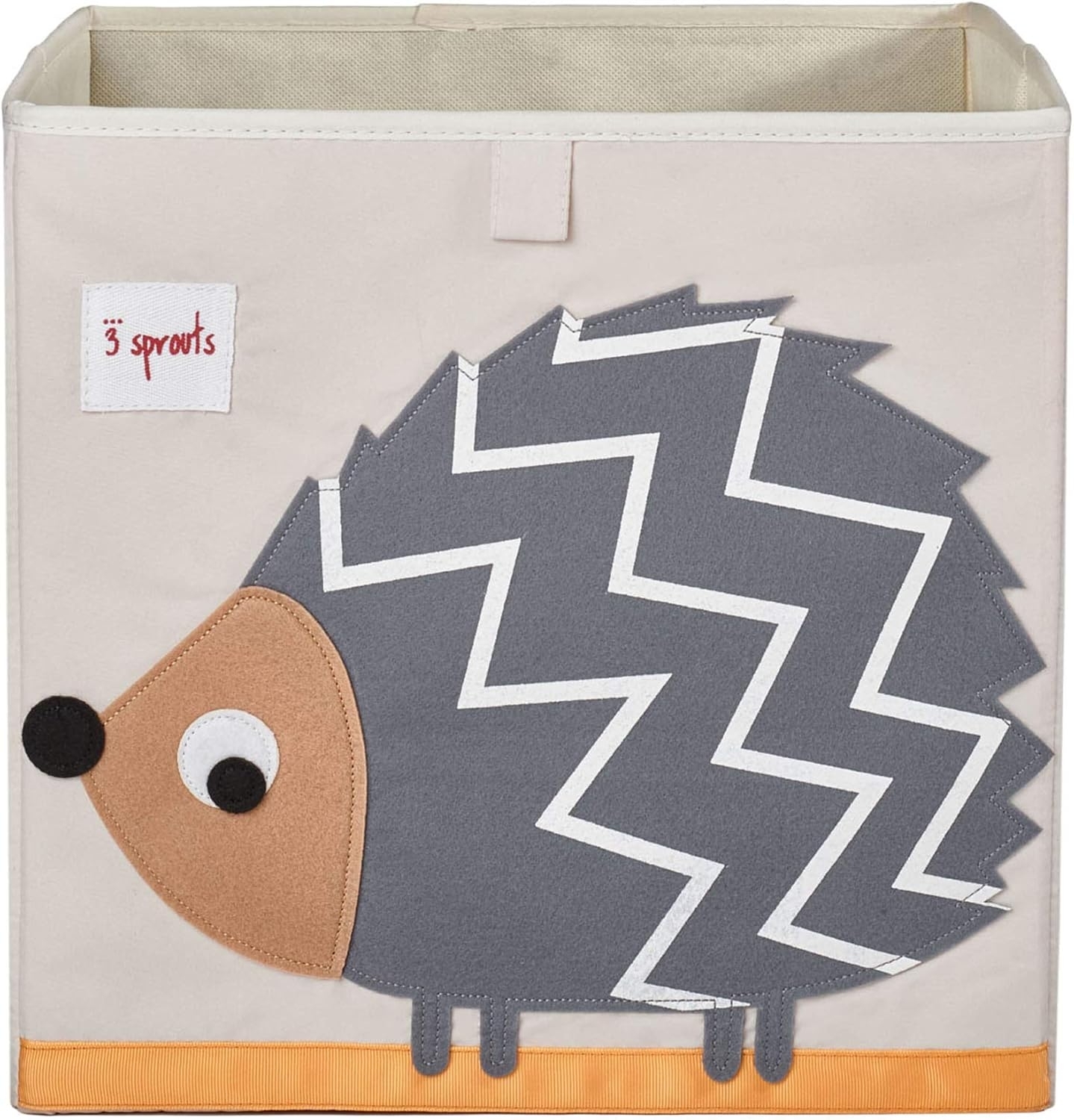 Die 3 Sprouts Aufbewahrungsbox mit niedlicher Igelapplikation ist die ideale Lösung für das Kinderzimmer. Sie bietet mit ihren praktischen Maßen von 33 x 33 x 33 cm viel Platz für Spielsachen und sorgt für Ordnung. Die stabile Box aus robustem Polyester-Stoff lässt sich einfach auf- und wieder zusammenfalten und passt in viele Regale und Schränke, wie das Kallax Regal von Ikea. **Highlights** - Niedliche Igelapplikation - Viel Platz für Spielsachen - Einfach auf- und zusammenfaltbar - Passt in viele Regale und Schränke - Robuster Polyester-Stoff **Produkteigenschaften** - Abmessungen: 33 x 33 x 33 cm - Material: 100 % Polyester (Außen und Dekor), 100 % Karton (Innen) - Farbe: (Farbe aus der originalen Beschreibung) **Lieferumfang** - 1x Aufbewahrungsbox Igel - Eventuell abgebildete Dekorationsartikel sind nicht im Lieferumfang enthalten