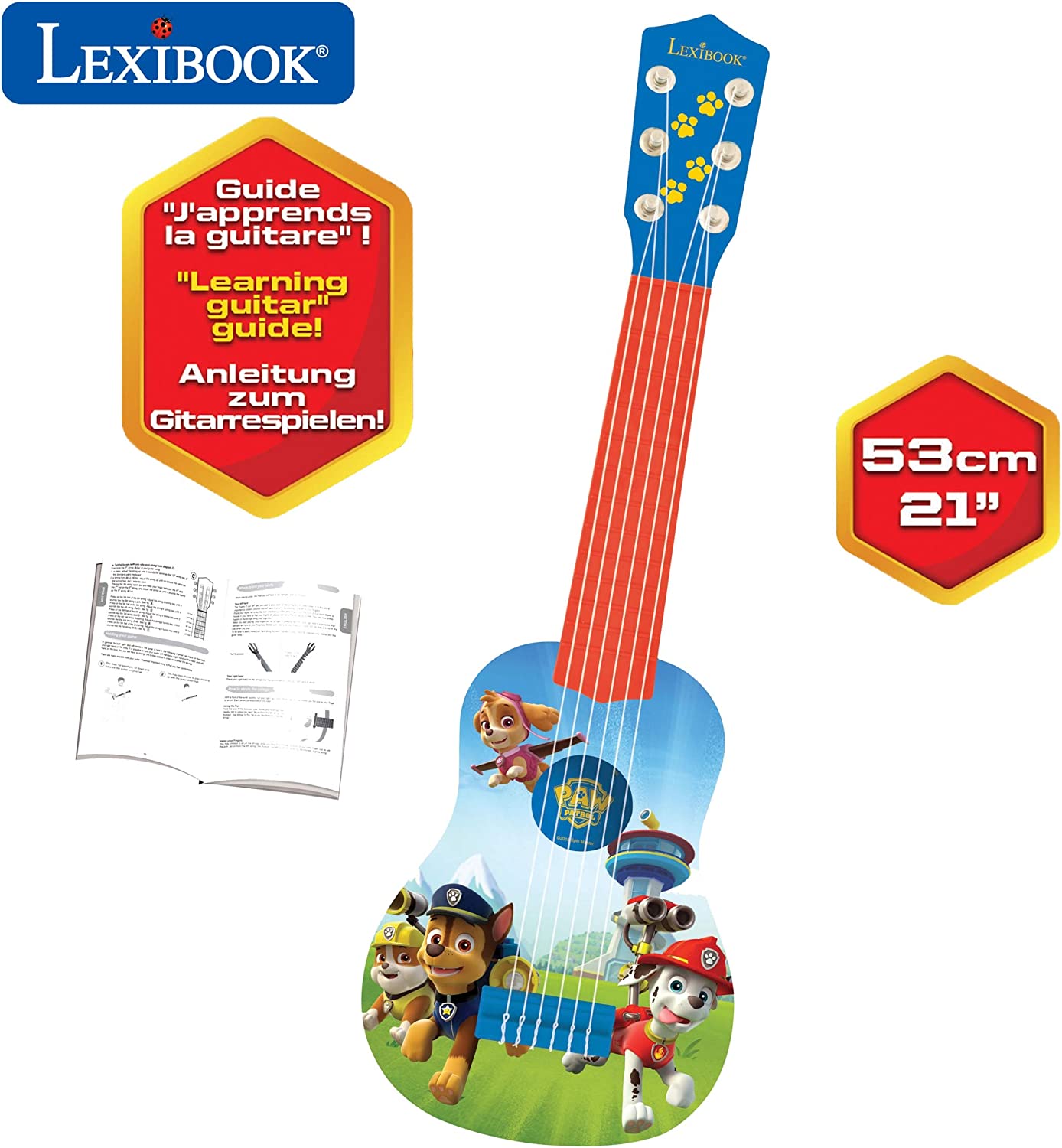 | Name | Lexibook K200PA PAW Patrol Helfer auf vier Pfoten Chase Gitarre, 6 echte Nylon Saiten, Groß für die Kleinen Fingern, Blau/ Orange |