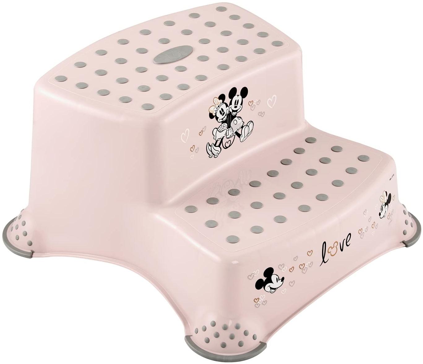 Zweistufiger Tritthocker Igor im Disney-Minnie-Maus-Design in der Farbe rosa. Dieser hochwertige Kinderhocker bietet Sicherheit und Stabilität beim Erreichen von Waschbecken oder Toiletten. Mit einer maximalen Belastbarkeit von ca. 120 kg und einer speziellen Anti-Rutsch-Oberfläche ist er ideal für Kinder im Alter von 1 bis 4 Jahren. Hergestellt aus stabilem Kunststoff (PP/TPE) und frei von BPA und Weichmachern, ist er leicht zu reinigen und zu transportieren. **Highlights** - Zweistufige Konstruktion für sicheres Hochsteigen - Anti-Rutsch-Trittfläche für festen Stand - Gummierte Füße verhindern Kippen und Verrutschen - Hochwertiger, stabiler Kunststoff (PP/TPE) - Belastbarkeit bis max. 120 kg **Produkteigenschaften** - Maße (LxBxH): 40 x 37 x 21 cm - Erste Stufe: 31 x 18 x 10,5 cm - Zweite Stufe: 29 x 15 x 21 cm - Gewicht: 782 g - Farbe: rosa - Motiv: Mickey und Minnie - Altersempfehlung: ab 1 bis 4 Jahren - Hersteller: Keeeper - Hersteller-Artikelnr.: 1003258124700 **Lieferumfang** - 1 Tritthocker Igor, zweistufig, Minnie Maus Dekor