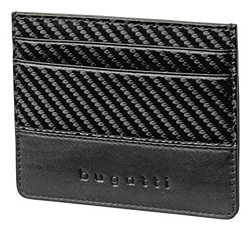 • Das Bugatti Comet Kreditkartenetui für Herren aus Leder ist ein flaches Portemonnaie für Karten in Schwarz mit außergewöhnlichem Carbon-Design