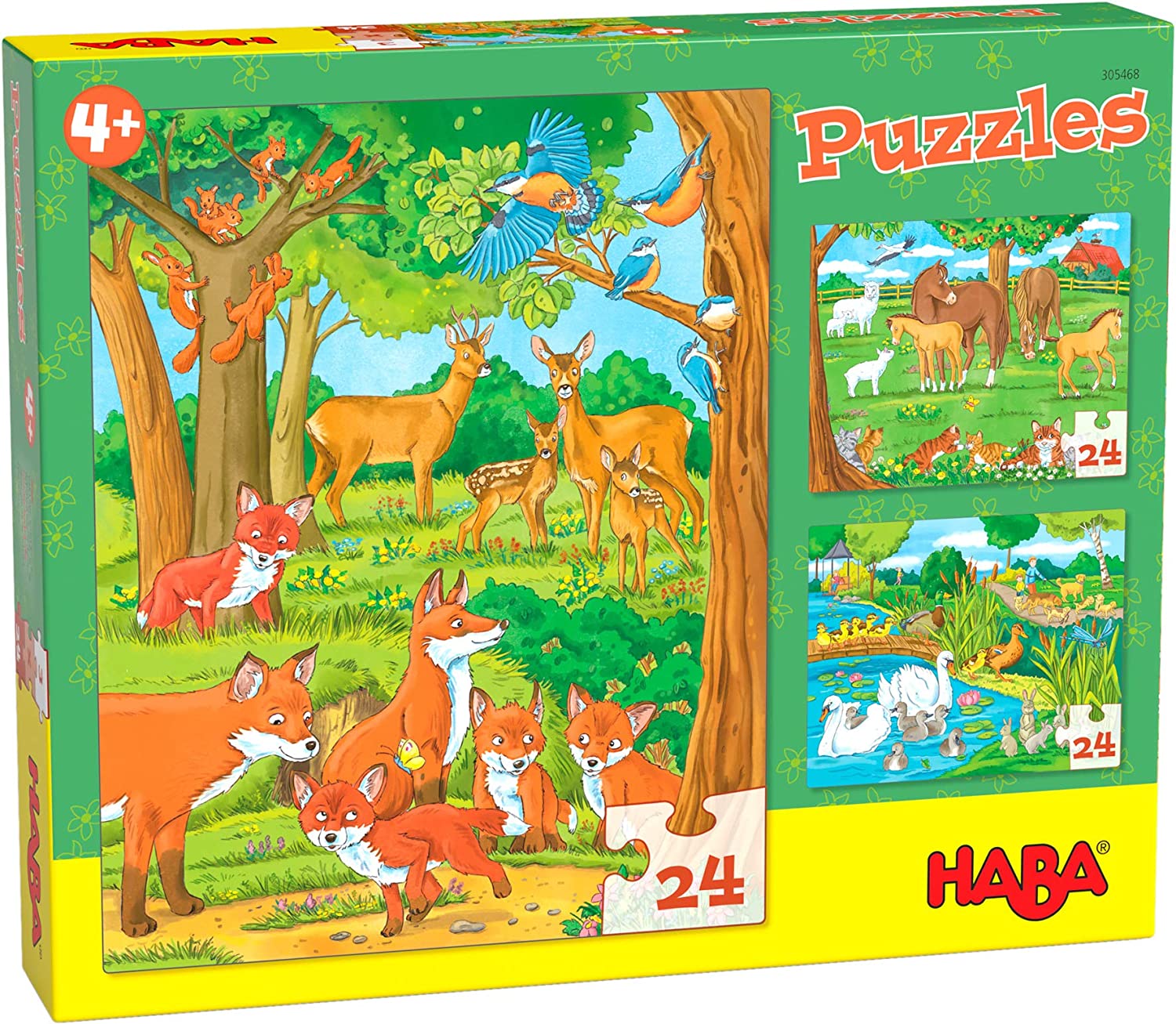 | Name | HABA 305468 - Puzzles Tierfamilien, Puzzle-Box mit 3 Tier-Motiven für Kinder ab 4 Jahren, Kinderpuzzles mit je 24 Teilen, zur Förderung der Feinmotorik und Auge-Hand-Koordination |