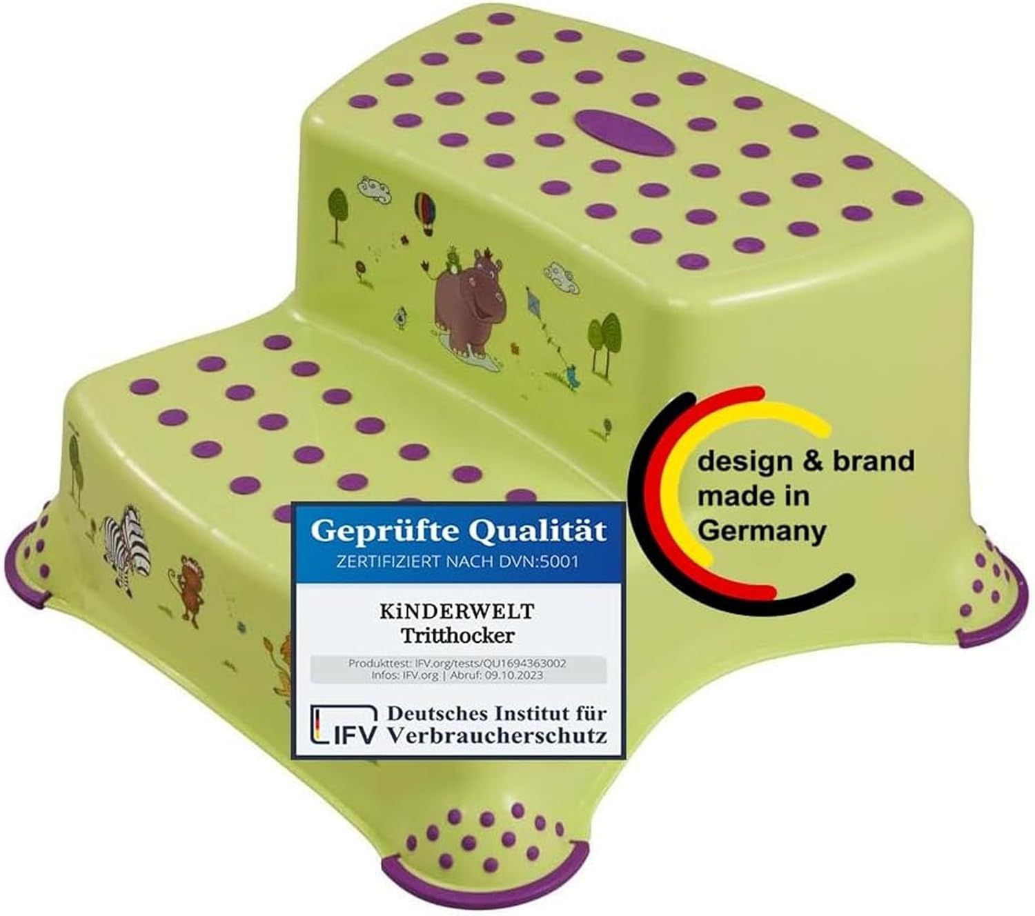 | Name | KiNDERWELT Tritthocker Premium zweistufiger Tritthocker Hippo grün stabiler Hocker |