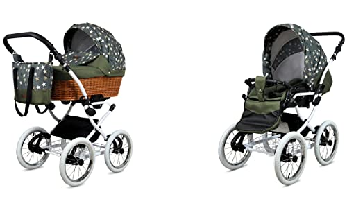 BabyLux ALU 2in1 Kinderwagen für Kleinkinder – Kinderwagen für Neugeborene und Kleinkinder – Max. 15kg – White Dots White Frame