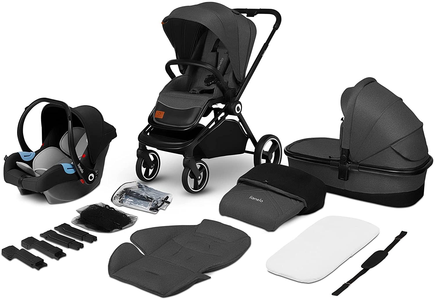 | Name | LIONELO Mika 3in1 Set Kinderwagen, Babywanne, Babyschale. Im Set Moskitonetz, Fußabdeckung, Regenschutz. Wartungsfreie Gummiräder. Leichte Konstruktion (GREY GRAPHITE) |