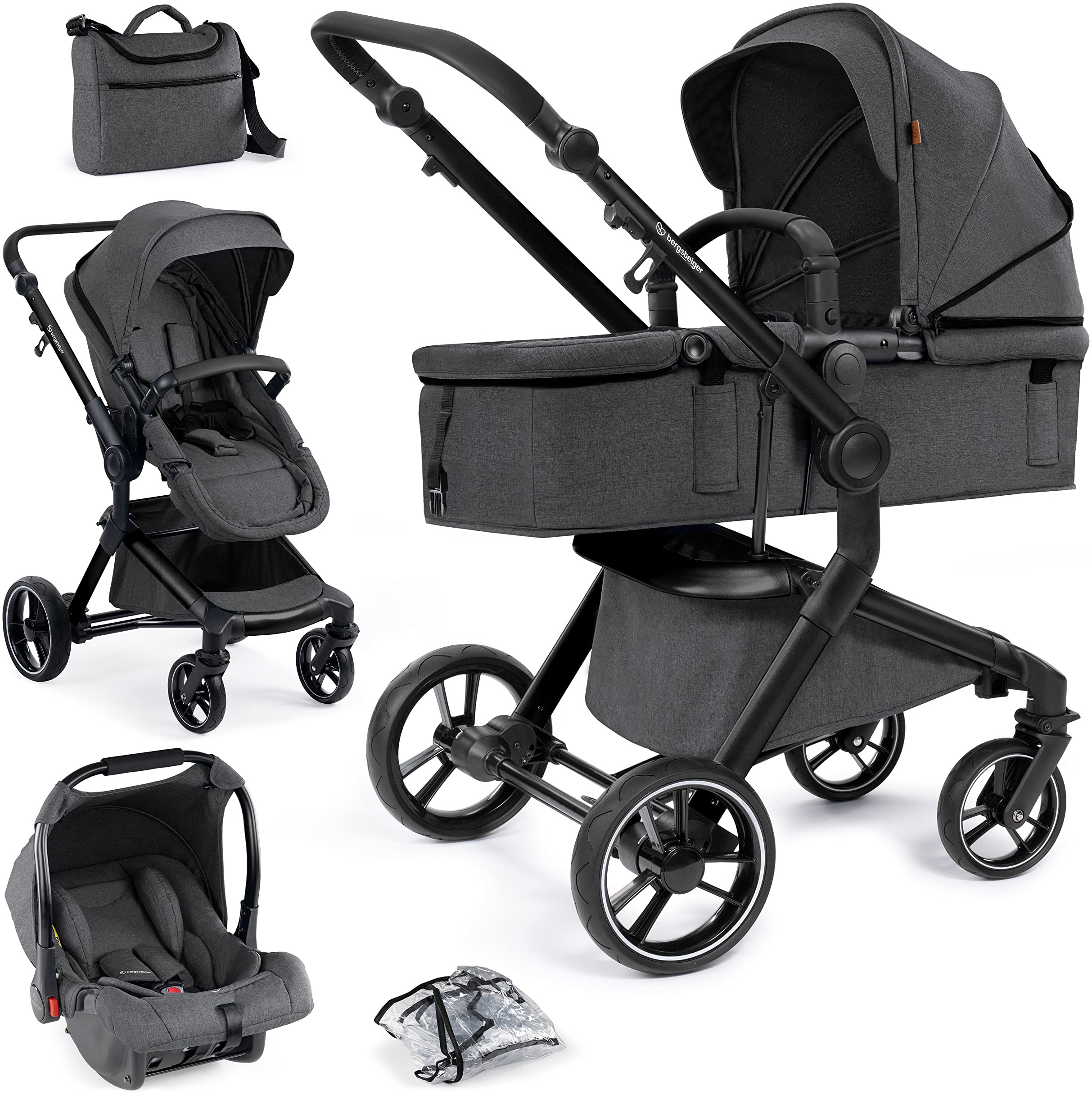 | Name | Bergsteiger Kinderwagen Lugo 3in1 | Kombikinderwagen Komplettset inkl. Zubehör - Babyschale, Buggy-Aufsatz, Sonnenschutz & Wetterfußsack | Isofix Station erhältlich |