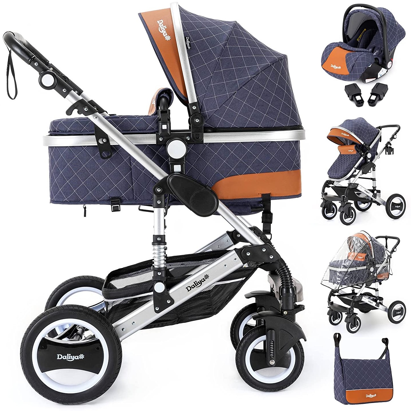| Name | Daliya® BAMBIMO 3in1 Kinderwagen und Buggy mit Babyschale, Blau mit Kontrast-Nähten |