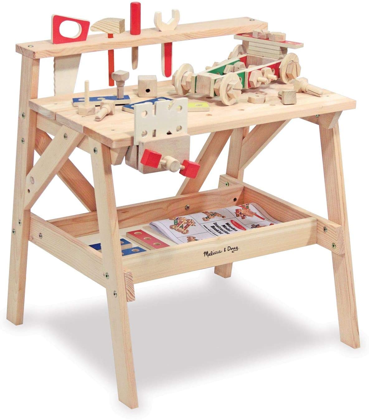 | Name | Melissa & Doug Wooden Project Solid Wood Workbench (Pretend Play, Sturdy Wooden Construction, Storage Shelf, 66.04 cm H × 47.625 cm W x 60.96 cm L) |