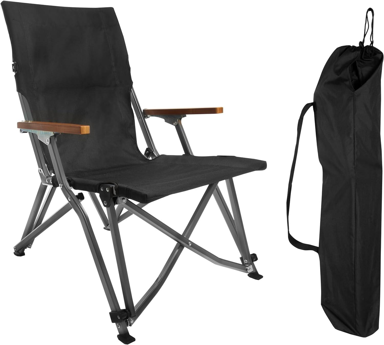 Der osoltus Faltsessel Lounge Low Campingstuhl Bergen in Schwarz ist der perfekte Begleiter für kleine Vans. Mit einem Packmaß von nur 97 x 17 x 17 cm und einem Gewicht von 3,2 kg lässt er sich mühelos transportieren. Die Sitzfläche misst 60 x 54 cm, die Sitzhöhe beträgt 38 cm. Der Stuhl verfügt über eine hohe Rückenlehne, Armlehnen aus Bambus und ein praktisches Aufbewahrungsfach in der Rückenlehne. Die Belastbarkeit liegt bei 120 kg. **Highlights** - Extrem kleines Packmaß: Ideal für unterwegs und platzsparend - Armlehnen aus Bambus: Natürliches und robustes Material - Aufbewahrungsfach in der Rückenlehne: Praktisch für kleine Utensilien - Hohe Rückenlehne: Für zusätzlichen Komfort - Leichtes, stabiles Aluminiumgestell: Für eine hohe Belastbarkeit **Produkteigenschaften** - Grundfläche: 60 x 54 cm - Sitzbreite: 46 cm - Sitztiefe: 44 cm - Rückenhöhe: 60 cm - Sitzhöhe vom Boden: 38 cm - Klappmaß: 17 x 17 x 97 cm - Material: Aluminium, Bambus, Oxford-Polyester - Gewicht: 3,2 kg - Belastbarkeit: 120 kg **Lieferumfang** - 1 x osoltus Faltsessel Lounge Low Campingstuhl Bergen - 1 x Transporttasche
