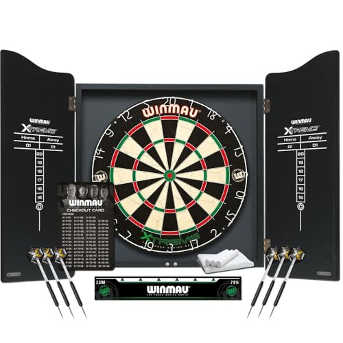 Dartscheibe, Schrank, 2 Dartsets, Oche-Streifen, Markierungskreide
