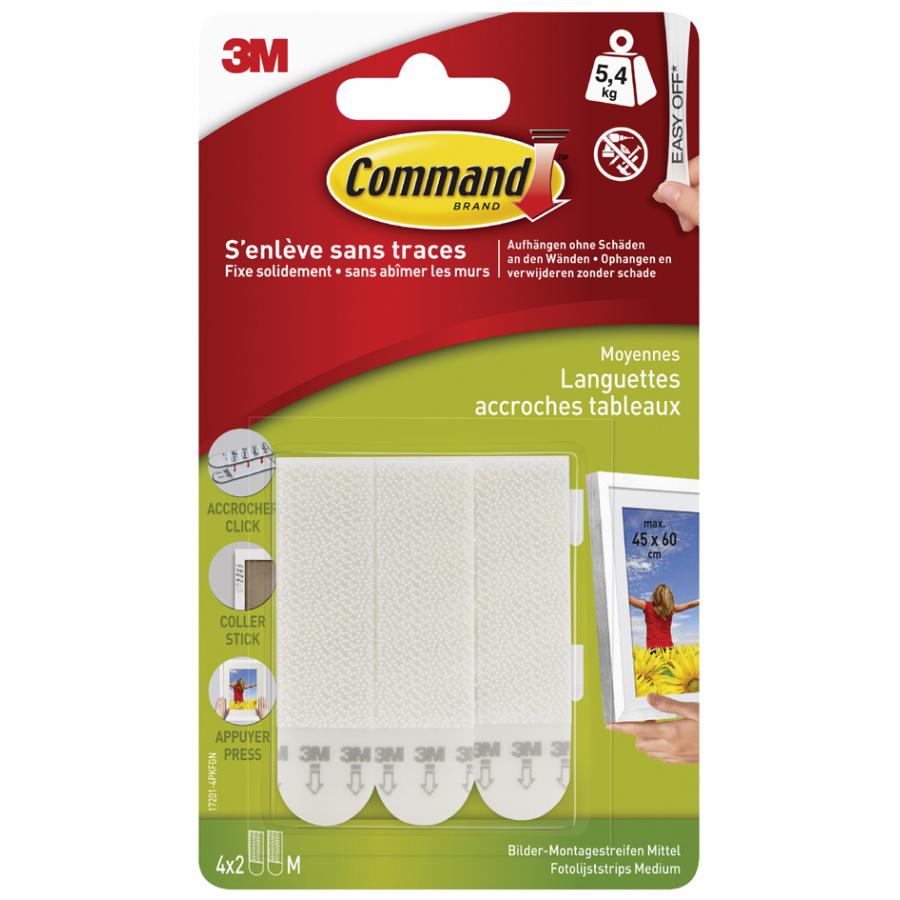 Die 3M Command Bilder-Montage Strips sind einfach und schnell anzubringen und halten leichte Bilder gut. Ein Kunde hatte jedoch Probleme mit der Haftung auf Tapeten und ein anderer hat die Strips nur für einen Schlüssel-Kasten ausprobiert.