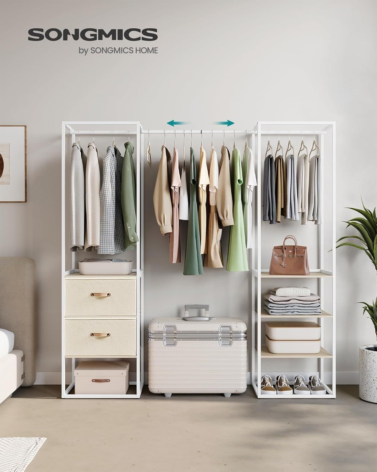 | Name | Songmics Kleiderschrank Kleiderständer hochbelastbar, 2 Schubladen, 4 Ablagen |