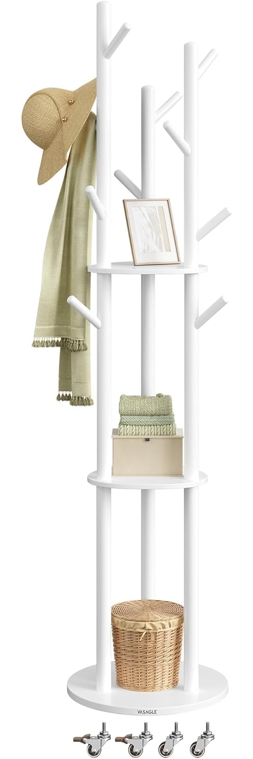 | Name | Garderobenständer, Kleiderständer mit 11 Haken und 3 Ablagen, 4 drehbare und abnehmbare Rollen, wolkenweiß |
