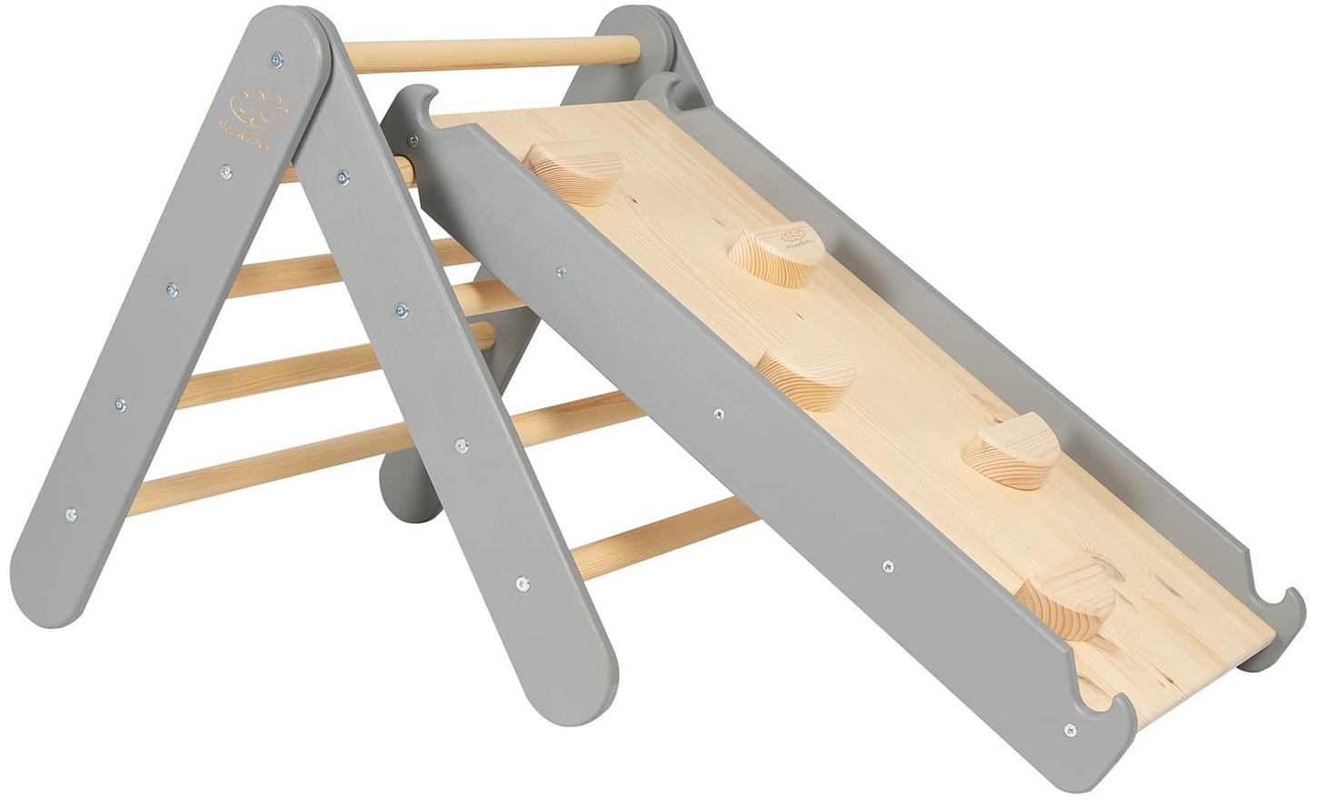 | Name | MEOWBABY Klettergerüst für Kinder - Indoor Kletterdreieck mit Rutsche, Montessori Spielgeräte Pikler aus Holz, Grau |