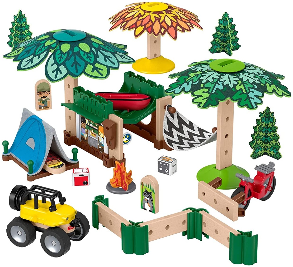 Fisher-Price - Wunder Werker Campingplatz Mit dem Wunder Werker Campingplatz Bausatz können Kinder den Campingplatz ihrer Träume gestalten und ihn mit Schatten spendenden Bäumen, einer gemütlichen Hängematte, einer Kanufahrt, einem Lagerfeuer zum Rösten von Marshmallows und mehr komplettieren! Mithilfe der über 60 Bauteile, die sich auf verschiedene Art und Weise miteinander kombinieren lassen, können Vorschulkinder ihren eigenen Campingplatz entwerfen. Mit den gleichen Teilen lassen sich immer wieder neue Entwürfe kreieren. Weil es so viele Möglichkeiten gibt, können Kinder damit jeden Tag einen neuen Campingplatz entwerfen - mit diesem besonderen Bausatz kann jede Idee verwirklicht werden! Wo die Entwicklung ins Spiel kommt - Kreativität und Fantasie: Der Fantasie sind keine Grenzen gesetzt, wenn Kinder auf kreative Weise ihren eigenen Campingplatz gestalten und mit den Figuren Geschichten erzählen. Planung & Aufbau: Vorschulkinder trainieren beim wiederholten Aufbau ihres Campingplatzes und beim Kombinieren der Bausteine zu unterschiedlichen Kreationen ihr gestalterisches Können und ihre Fähigkeiten als kleine Werker! Warnhinweis: Achtung! Nicht für Kinder unter 36 Monaten geeignet Achtung! Enthält verschluckbare Kleinteile. Erstickungsgefahr. Bei Sortimenten und Großpackungen gilt der angegebene Preis pro Stück. Eine Auswahl ist nur bedingt möglich!