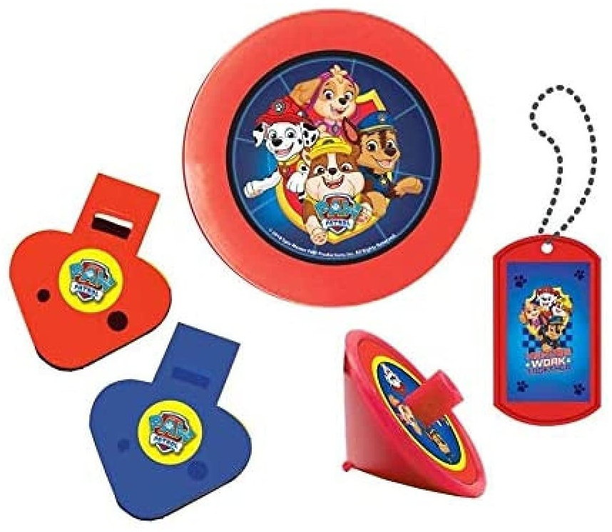 Das Mitgebsel-Set Paw Patrol 2018 24-teilig enthält laut Beschreibung Jojos, Anhänger, Kreisel und Klammern. Allerdings sind stattdessen Frisbees enthalten und die Klammern sind nicht erkennbar. Zudem funktionieren nur wenige der Pfeifen. Die Größe der Artikel ist kleiner als erwartet.