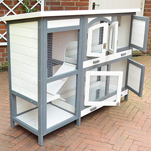 zooprinz brandneuer Hasenstall Krümmel - wetterfest und leicht zu reinigen - 2-stöckigXXL Kotschubladen, ideal für Draußen, Holzvilla für Kleintiere, braun