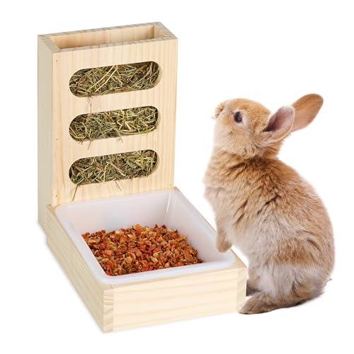 Relaxdays Heuraufemit Futterschale, Futterraufe für Kaninchen & Meerschweinchen, Heuspender zum Einhängen, Holz, Natur, 1 Stück