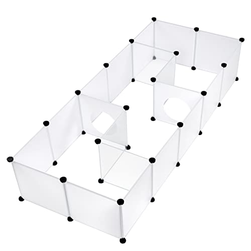 EUGAD Freilaufgehege KaninchenFreigehege Meerschweinchen, Welpenauslauf, Kleintiergehege für drinnen, Gehege für Chinchilla Hamster, mit Hammer, Weiß + Transparent, 175x75x35cm 0047WL