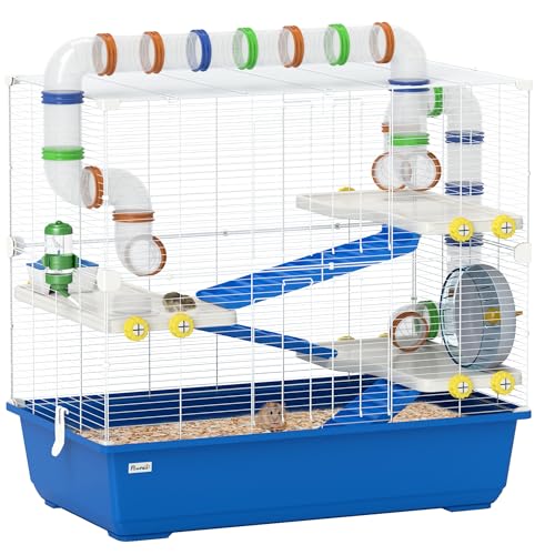 • Der PawHut Hamsterkäfig für Zwerghamster bietet Ihrem Haustier ein 4-Etagen-Vergnügen mit farbenfrohen Röhren und großzügigen Ebenen