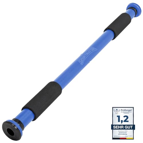 SPORTINATOR® Klimmzugstange zum Einspannen im Türrahmenblau, belastbar bis 150 kg, kompakt & sicher, Länge 60-102 cm