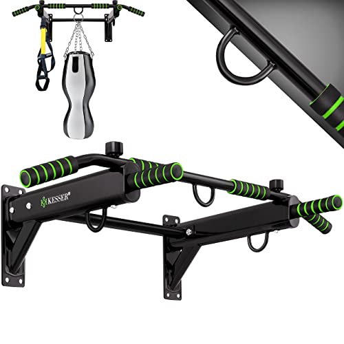Die KESSER® 4in1 Klimmzugstange zur Wandmontage bietet vielseitige Trainingsmöglichkeiten für Zuhause. Mit rutschfesten Griffen und zusätzlichen Funktionen für Seile, Ringe und Boxsäcke ermöglicht sie ein effektives Workout für verschiedene Muskelgruppen. Die stabile Konstruktion sorgt für Sicherheit und Stabilität während des Trainings, wodurch Nutzerinnen und Nutzer ihre Fitnessziele bequem von zuhause aus erreichen können.